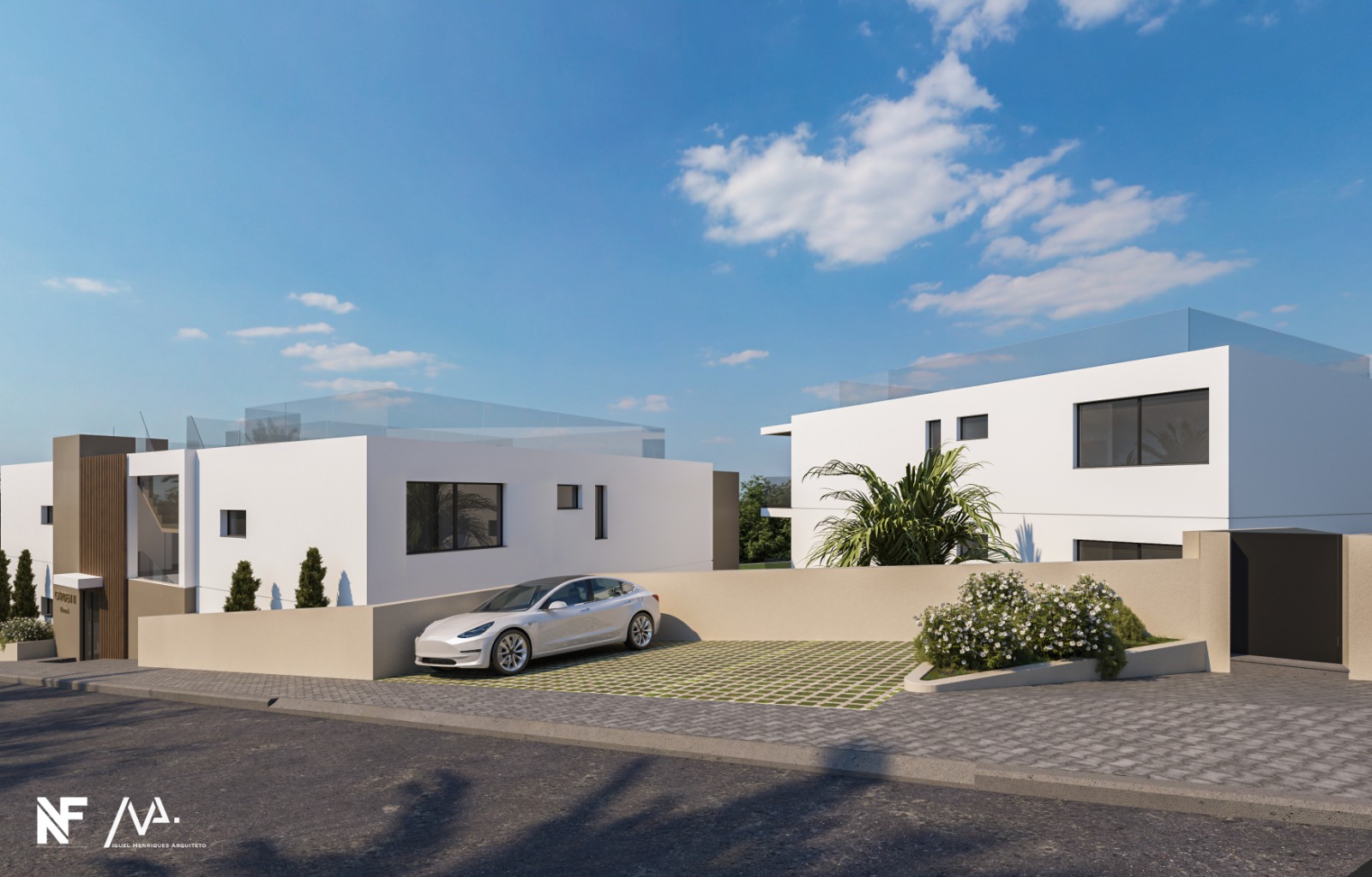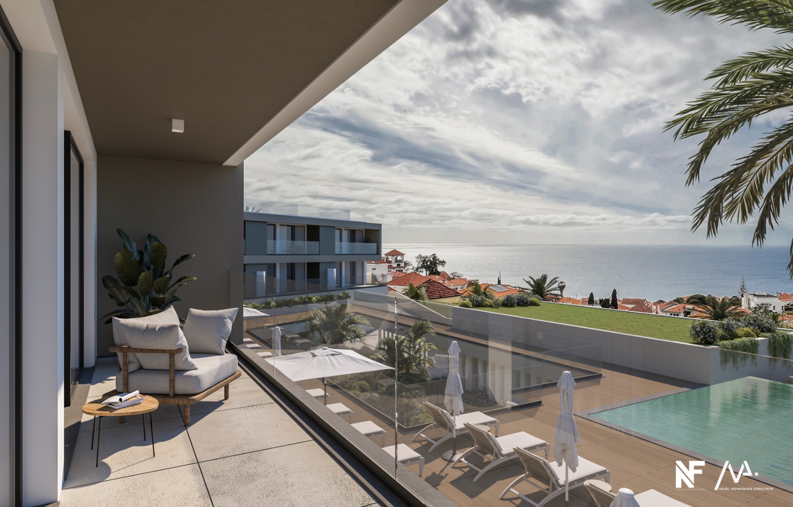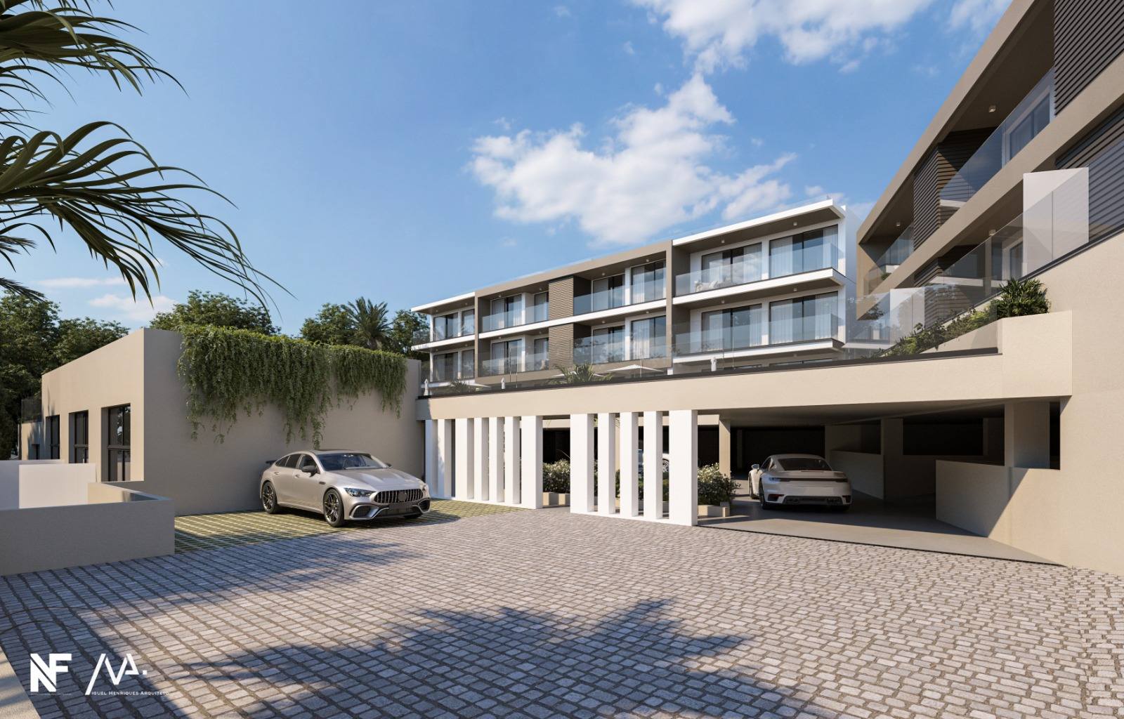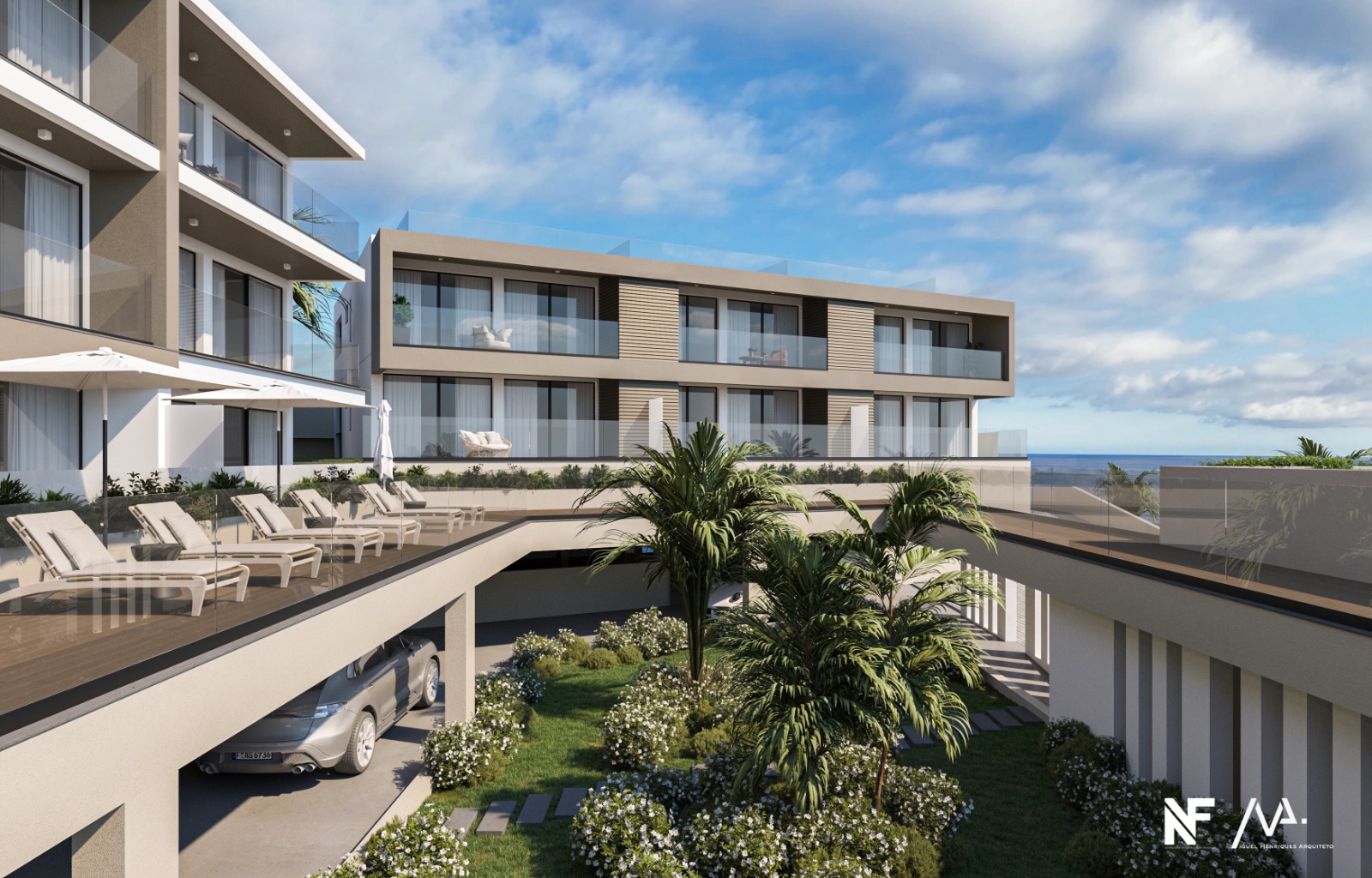 Linhas elegantes e sofisticadas, com varandas amplas, terraços privados e uma integração harmoniosa entre arquitetura moderna e espaços exteriores distintos.
